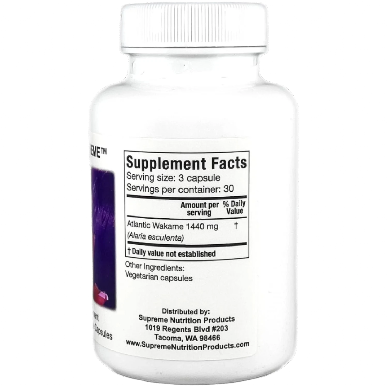 Alaria Surpeme™ is packaged in a bottle of 90 veggie caps, each containing approximately 485 mg of Alaria esculenta without fillers, binders or excipients. Take 3 capsules daily as a trace mineral source, or as directed by your healthcare practitioner. For detoxification, metal and chemical chelation, and radiation protection, let your physician recommend an optimal dose. It is well tolerated by sensitive patients, and is (in our opinion) the best source of micro minerals for these type of patients