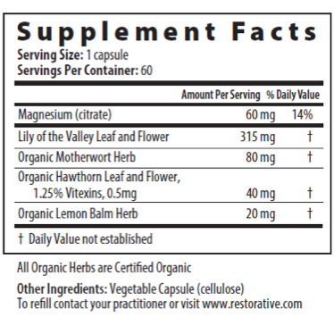 Cardiac Calm Px provides an impressive combination of herbs well known to support the heart muscle and nourish the cardiovascular system. The Certified Organic herbs and magnesium have broad ranging effects, including support for cardiac circulation, cardiac muscle fiber contractility and oxygen utilization.