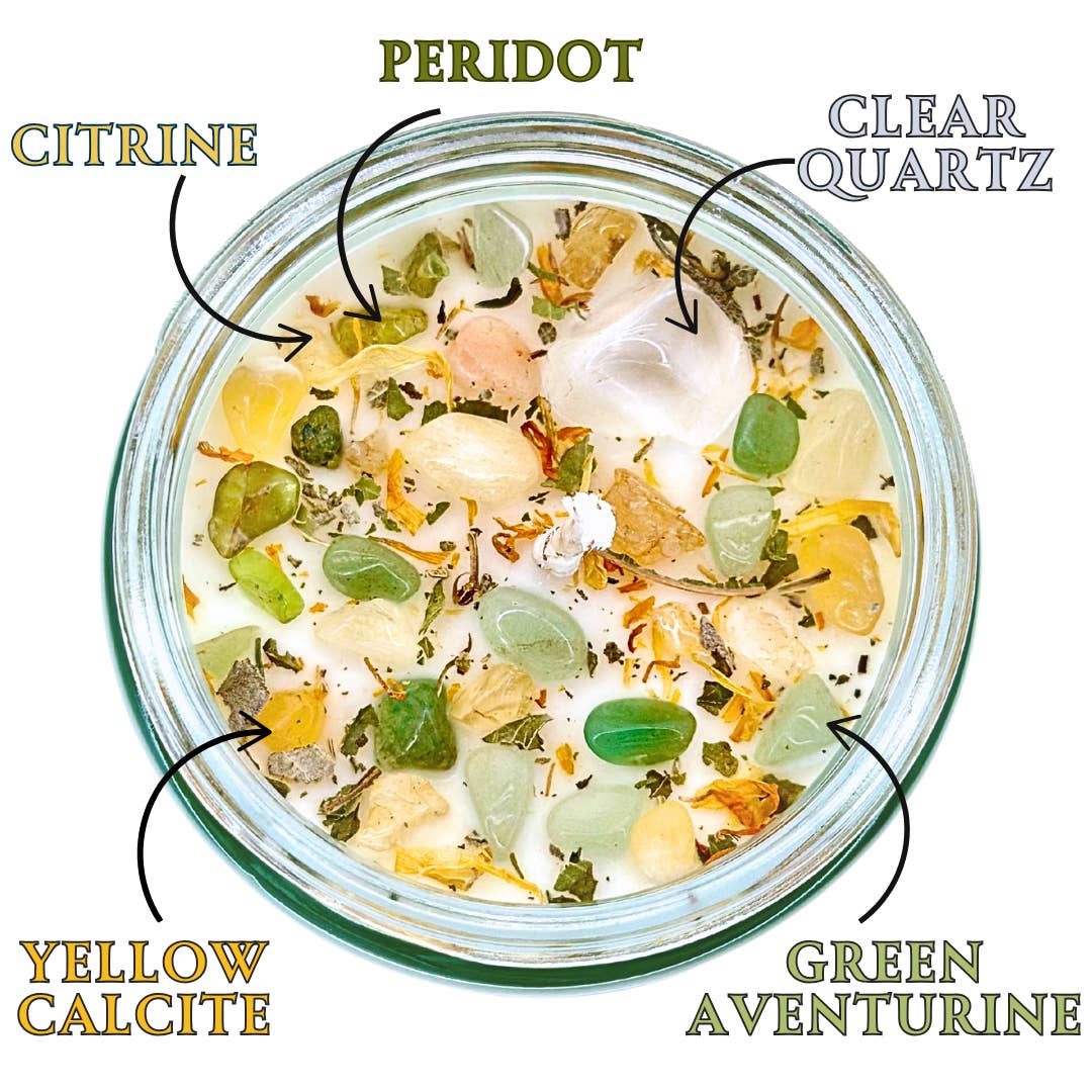 Refresh availabilityThis listing is for a single Cheer Up Candle container. The Cheer Up Candle is a handmade and hand-poured candle made from Eco-soy wax and a combination of Natural Fragrance & Essential oils. The candle is topped with healing crystals, dried flowers, and herbs which are mindfully selected to help set the intention of the candle.