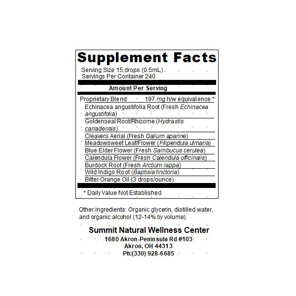 Antimicrobial and luphagogue herbs are combined with alternative, anodyne, and diaphoretic herbs to tonify mucous membranes and immune system, cleanse tissues and clear heat.