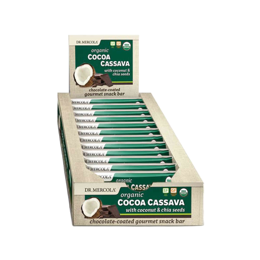 If you’re a chocolate lover, the Cocoa Cassava bar is for you. My Organic Cocoa Cassava Bar contains both organic dark chocolate with 56 percent cacao and organic raw cacao powder.