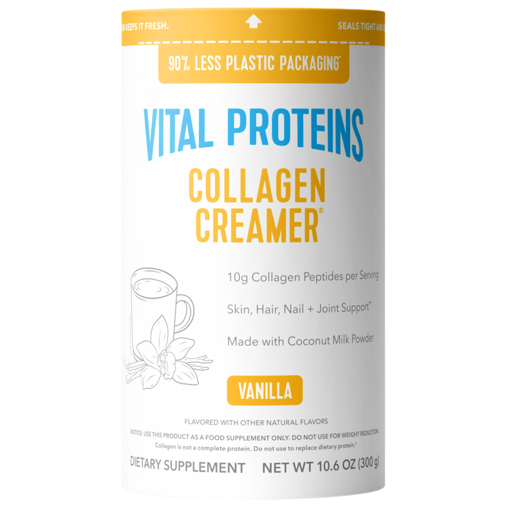 Refresh availabilityFor a made-without-dairy upgrade to your morning routine, reach for Vital Proteins Collagen Creamer® in Vanilla! Packed with 10g of collagen per serving and MCTs from coconut milk powder, this morning staple ensures a peppy start to any day.**