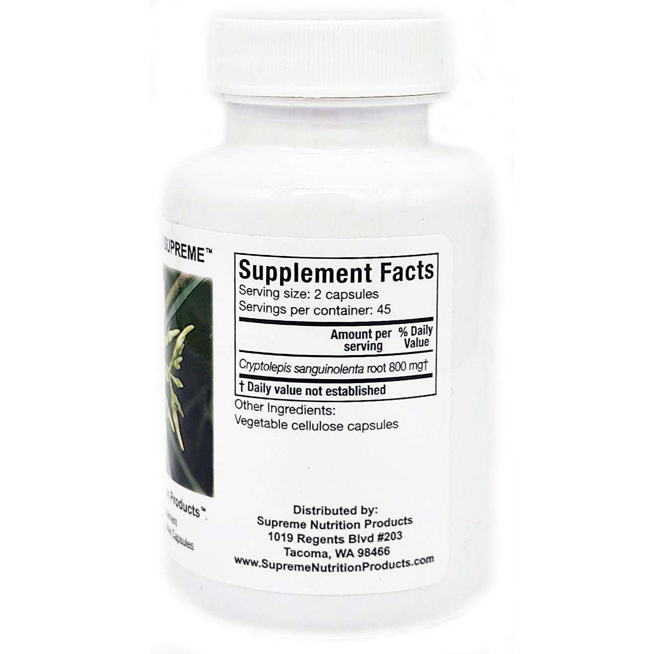 Refresh availabilityCryptolepis Supreme is a dietary supplement made with Cryptolepis sanguinolenta, a botanical extract native to Western Africa. Each capsule contains approximately 400 mg of Cryptolepis sanguinolenta in a vegetarian capsule, without fillers, binders, or excipients.