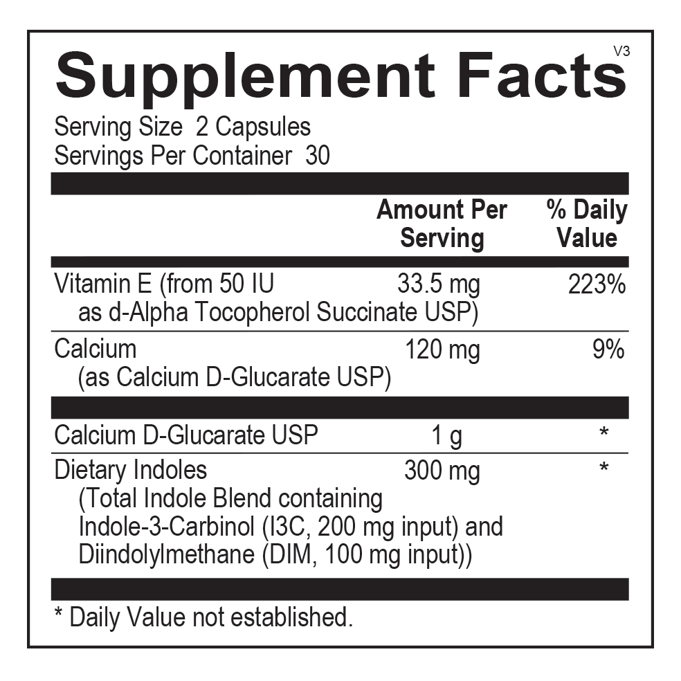 CDG EstroDIM® is a targeted supplement that combines the synergistic benefits of the cruciferous vegetable metabolites indole-3-carbinol (I3C) and 3-3'-diindolylmethane (DIM) to support balanced estrogen metabolism. Formulating I3C and DIM together creates the ideal combination of beneficial metabolites that work together to support estrogen balance and breast and prostate health.