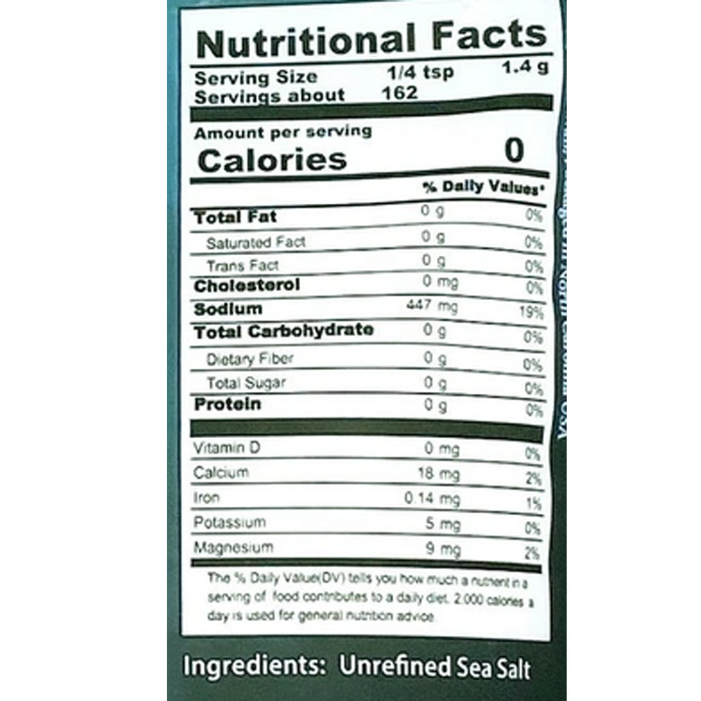 This pristine ocean sea salt provides 2% of your daily value of calcium and magnesium per serving and also contains potassium and selenium, plus many trace elements such as copper, iron, zinc, manganese and chromium. Enjoy its smooth flavor as a superior gourmet sea salt. This remarkable mineral-rich sea salt is harvested using a sustainable, proprietary method which leaves vital minerals intact and produces a salt that is naturally 33% lower in sodium than table salt.