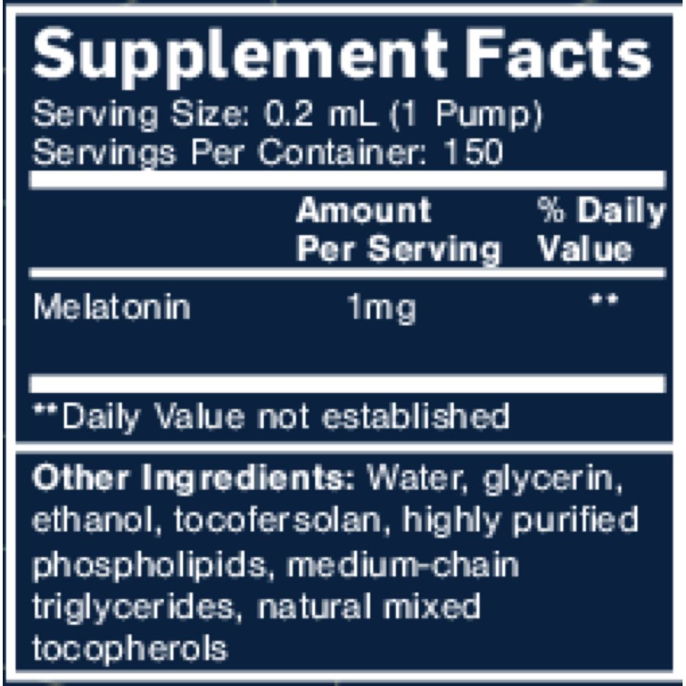 Serving Size: 1 pump (0.2 mL) – 1mg melatonin