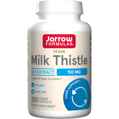 Jarrow Formulas® Milk Thistle (Silybum marianum) 30:1 extract is standardized to contain 80% total Milk Thistle seed flavonoids, including the important Silymarin fractions isosilybinins A and B, silybinins A and B, silychristin and silydianin.