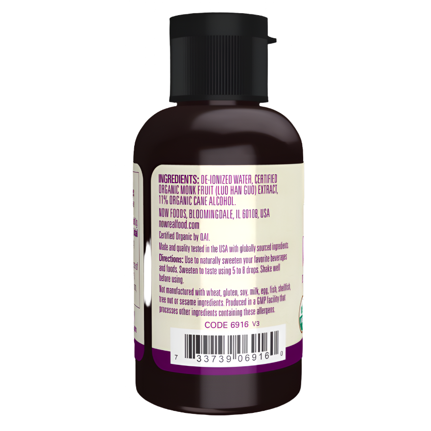 Monk fruit, also known as Luo Han Guo, is our newest zero-calorie sweetener. Monk fruit is significantly sweeter than sugar, up to 200 times as sweet and is a fantastic alternative to sugar in beverages. NOW Real Food®Organic Monk Fruit Liquid has a delightfully vibrant, sweet taste with very little aftertaste.