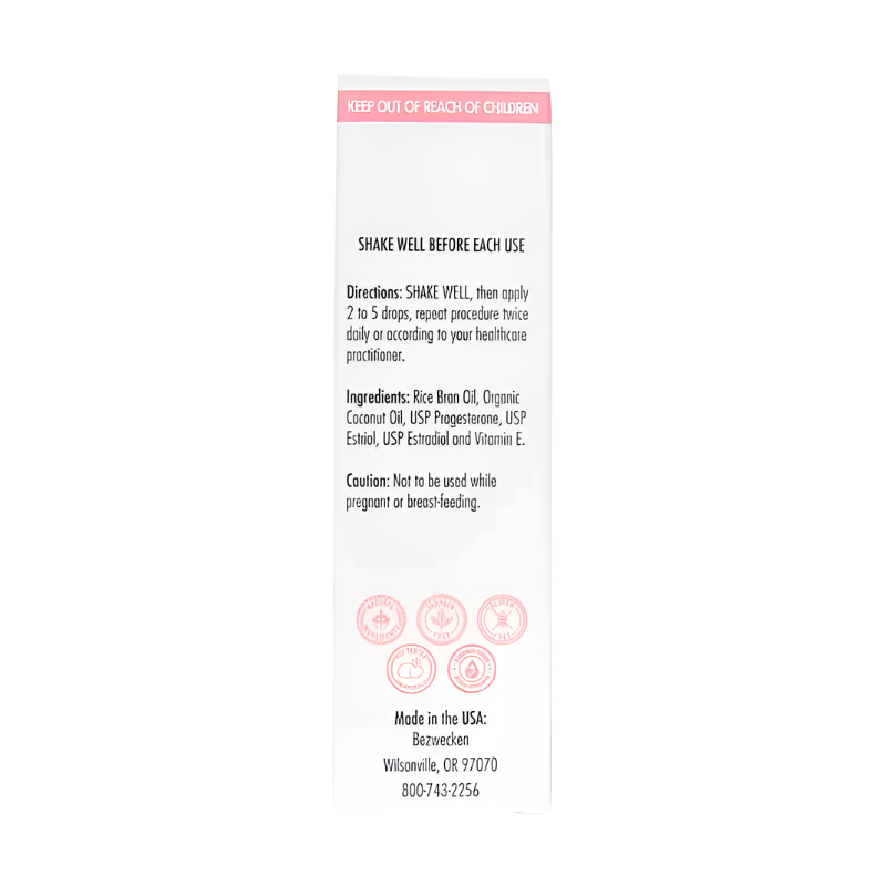Ingredients: Rice Bran Oil, Coconut Oil, USP Progesterone, USP Estriol, USP Estradiol, USP Estradiol and Vitamin E.