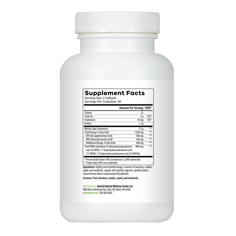 | Total PRMs [including 18-hydroxyeicosapentaenoic acid (18-HEPE), 17-hydroxydocosahexaenoic acid (17-HDHA), 14-hydroxydocosahexaenoic acid (14-HDHA)] | 400 mcg | ** |