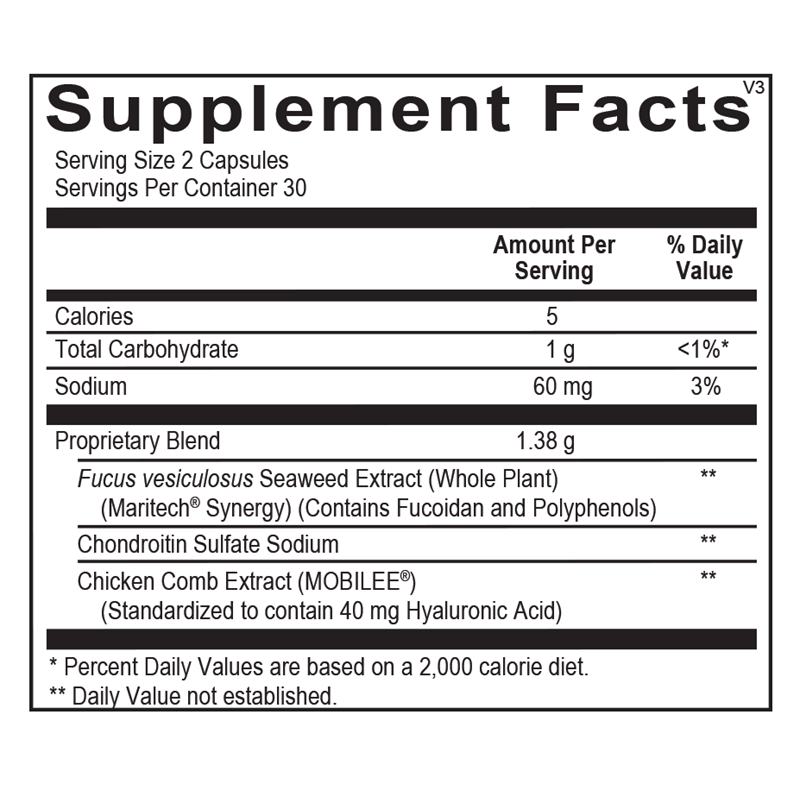 Contains glycosaminoglycans, hyaluronan, fucoidan, and marine polyphenols.