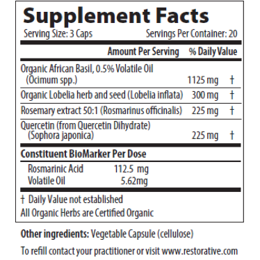 Respiratory Ez is a formula designed to support normal breathing and airway functions. The primary herb in this formula is Lobelia from Certified Organic herb tops and seeds. Lobelia maintains healthy bronchial functioning, and also supports healthy leukotriene metabolism, which subsequently protects healthy sinus function. Hyssop and Zingiber are high in resins and volatile oils that can further assist in promoting healthy sinus function.