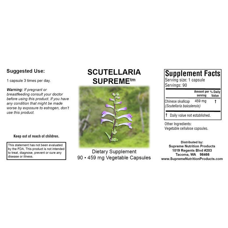 Scutellaria Supreme™ is packaged in a bottle containing 90 veggie capsules, each containing approximately 500 mg of Scutellaria baicalensis without fillers, binders or excipients. 1 capsule 3x per day, or as directed by your healthcare practitioner.