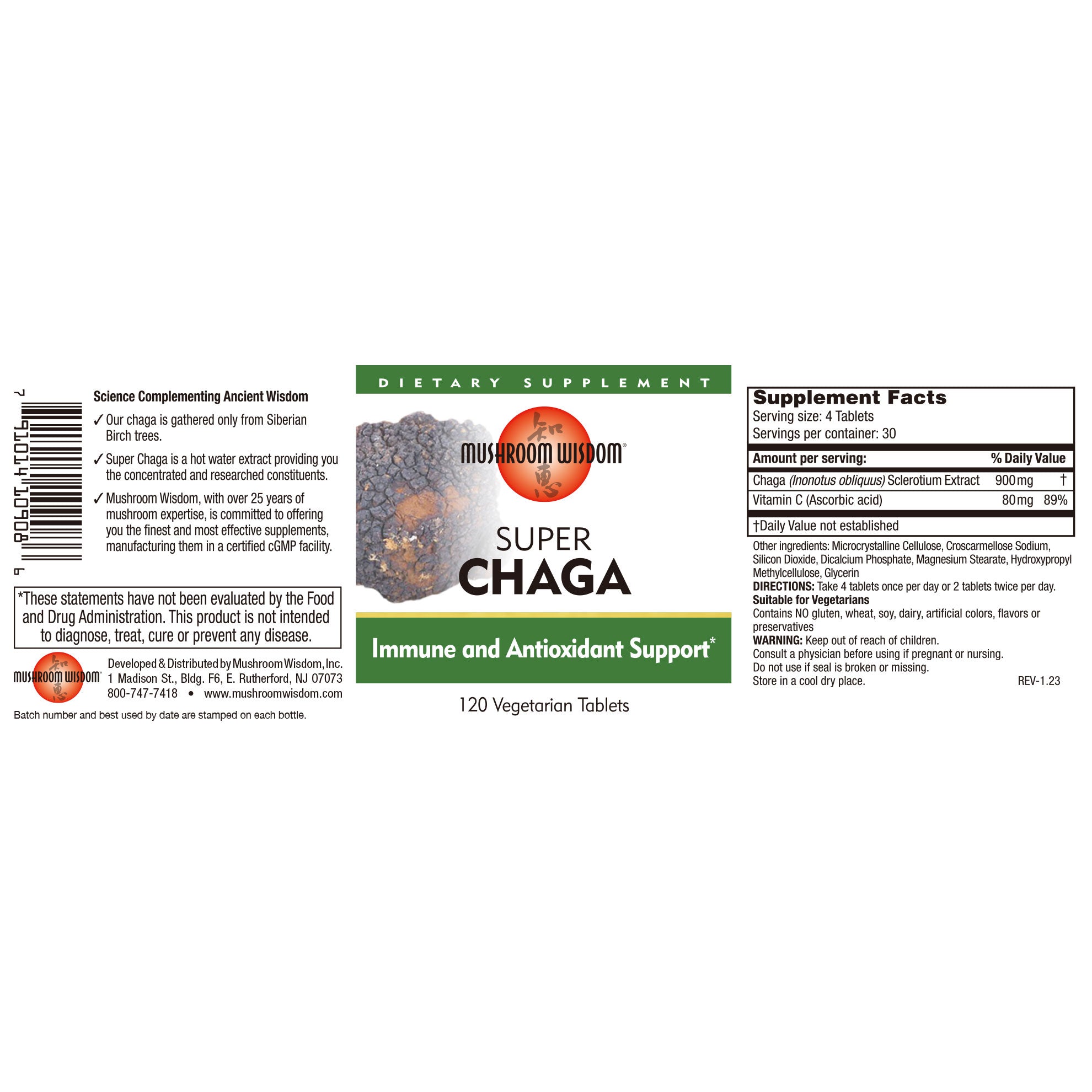 900 mg Chaga extract per 4-tablet serving