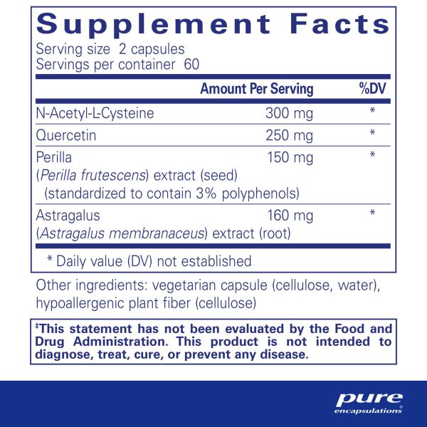 Contains N-acetyl-L-cysteine, quercetin, perilla extract, and astragalus extract