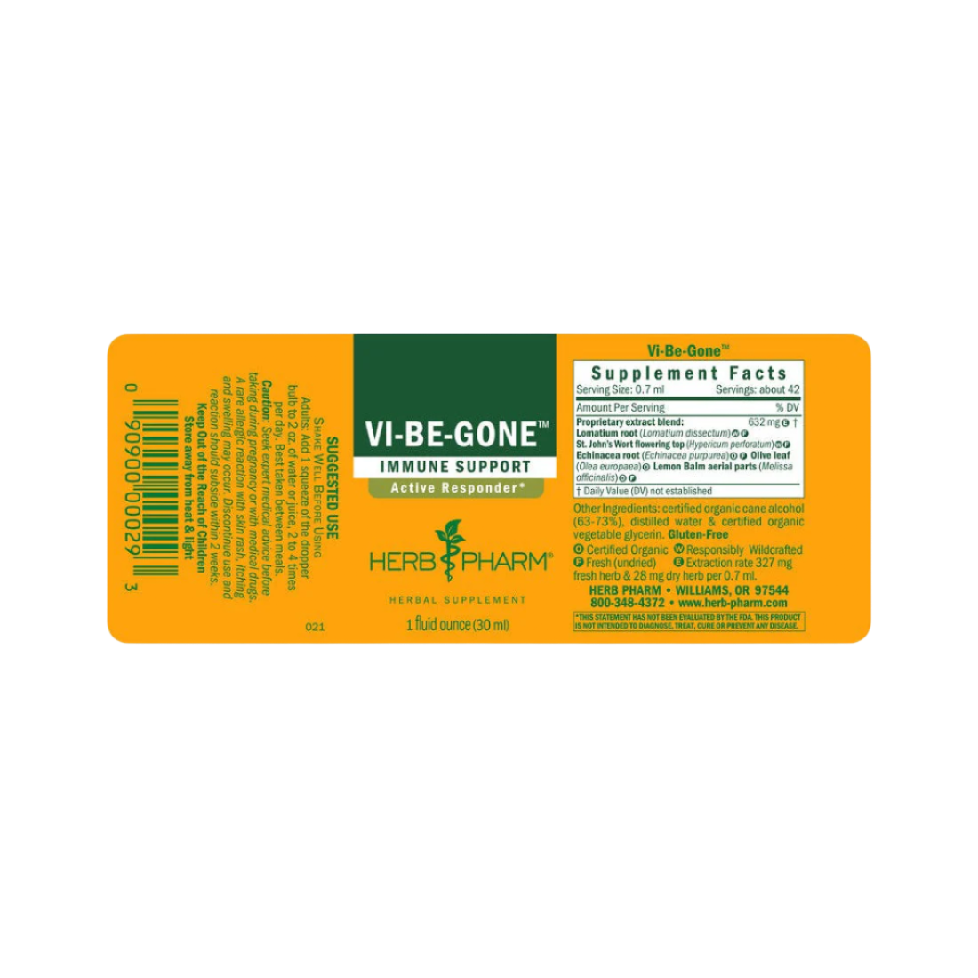 Our Vi-Be-Gone compound features Lomatium extract prepared from the fresh root of Lomatium dissectumplants, responsibly wildcrafted for us in their rocky, Oregon habitat. It also features St. John's Wort responsibly wildcrafted in Oregon's Siskiyou and Cascade mountains and extracted fresh each summer near the solstice.