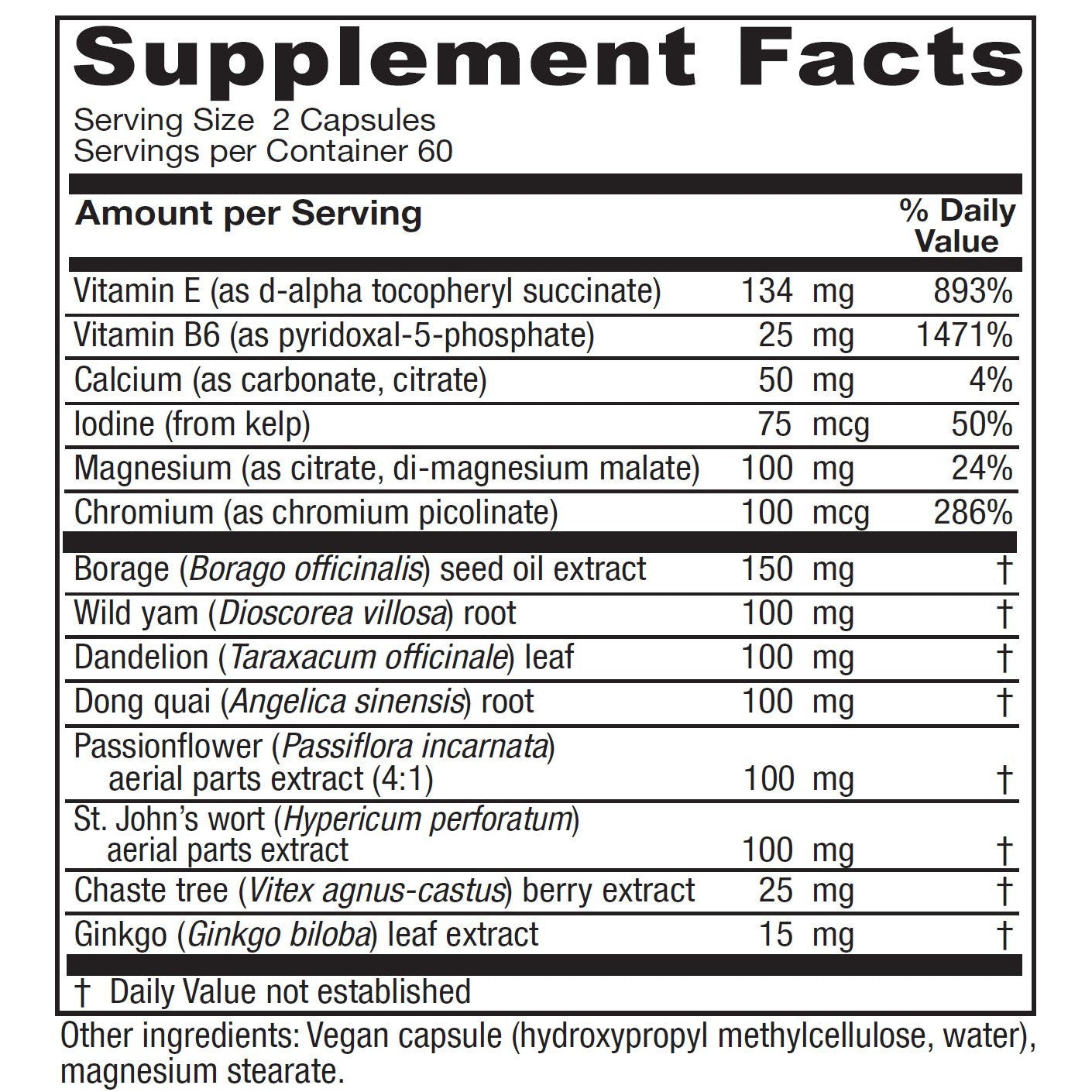 Two (2) capsules, two (2) times daily from mid-cycle (day 14) until menses OR, two (2) capsules every day, or as recommended by your healthcare professional.