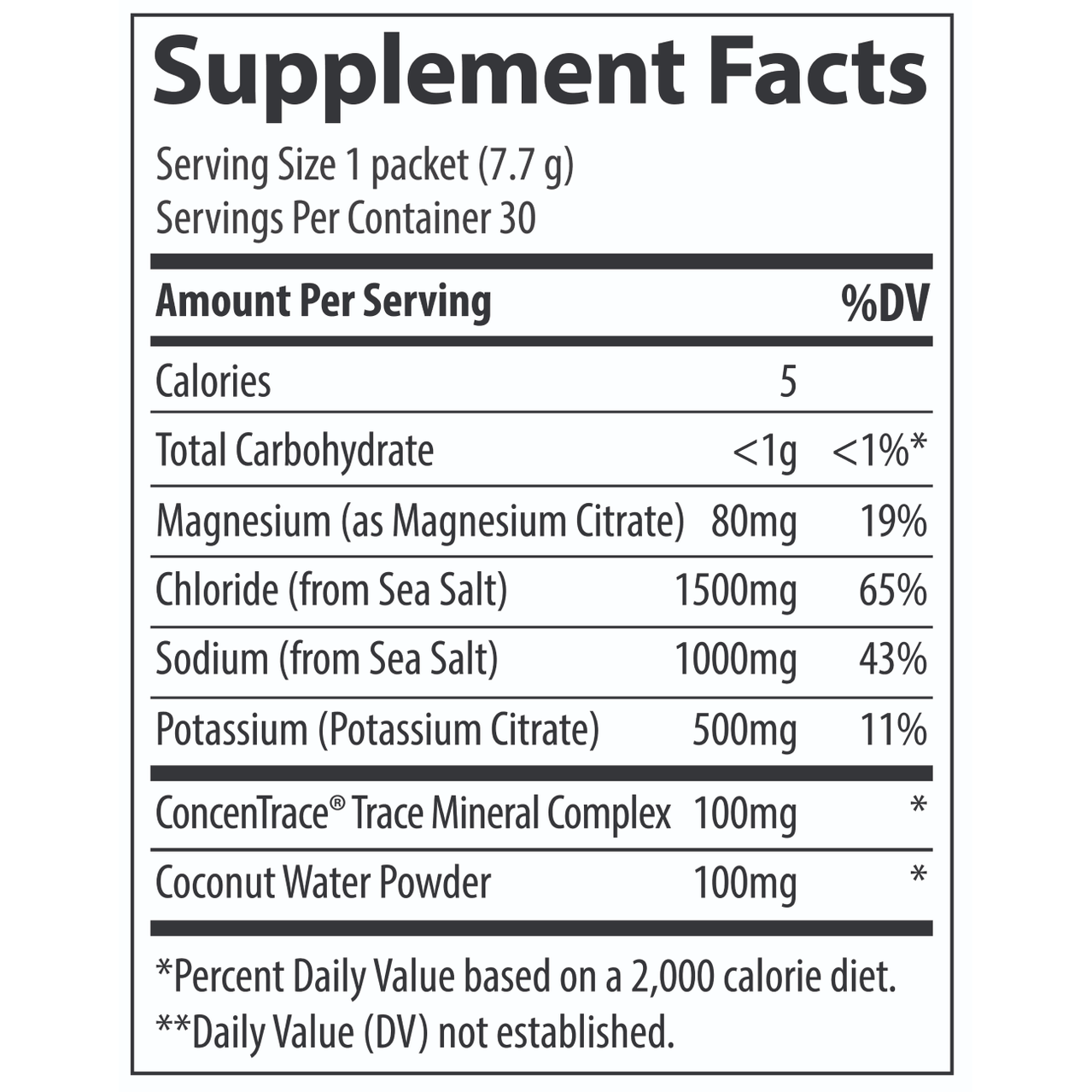 Other Ingredients: Ancient Utah Sea Salt, citric acid, natural flavors, stevia leaf extract (Reb A), silicon dioxide.